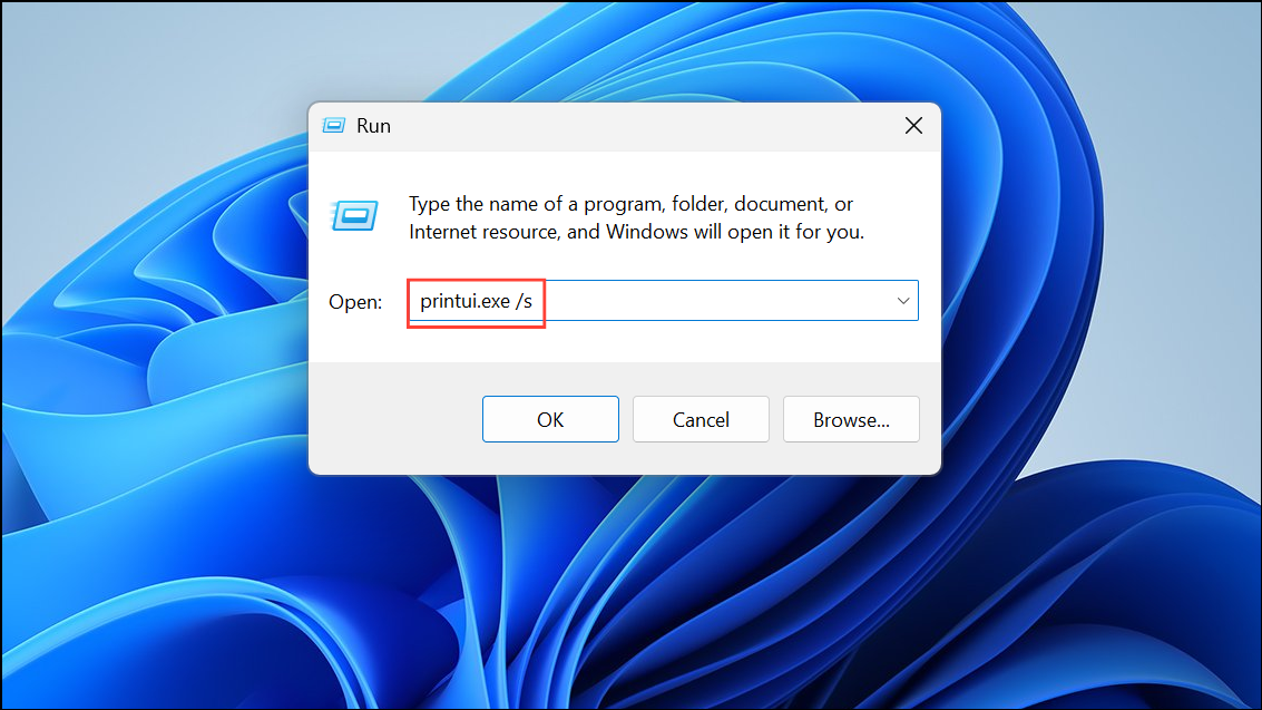 A futás párbeszédpanel megnyitásához írja be az írástprintui.exe /s