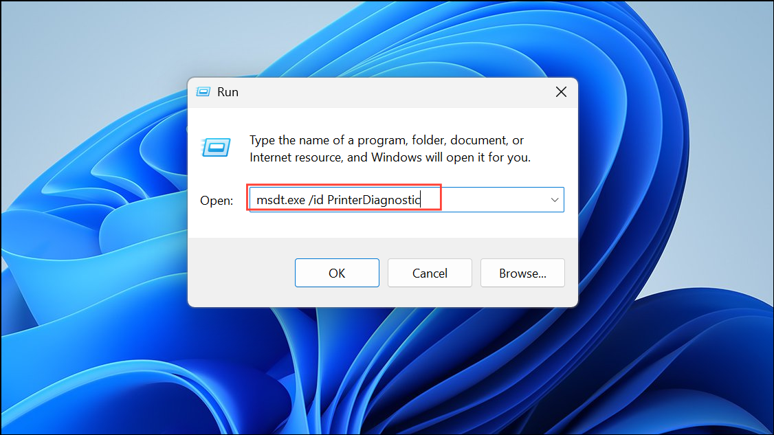 , belépmsdt.exe /id PrinterDiagnostic