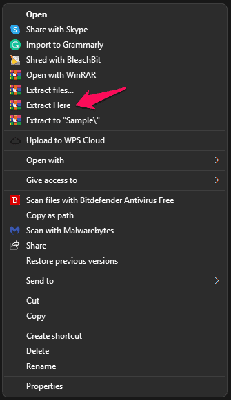 4. lépés:A fájlt ugyanabban a helyen extrahálják.