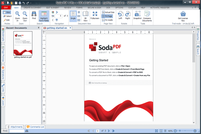 Kuten nimestä voi päätellä, Nitro Pro PDF -sviitti on täydellinen paketti PDF-asiakirjoihin liittyviä työkaluja. PDF -lukijoiden tärkein pluskohta on sen minimalistinen käyttöliittymä. Nitro Pro PDF -sviittiliitäntä tehdään jäljittelemällä Microsoft Office, jotta se olisi kätevää.