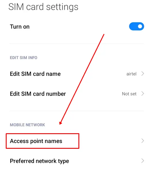 1. Mennä puhelimeenAsetukset> SIM -kortit> Valitse SIM> Acess Point Name.