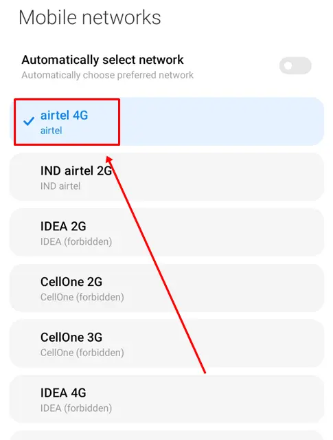 Heikkojen signaalien takia puhelimesi ei voi valita verkkoa automaattisesti. Tällaisissa tapauksissa voit valita verkon manuaalisesti.