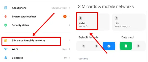 1. Mennä jhkAsetukset> SIM -kortit ja mobiiliverkot> Valitse SIM.