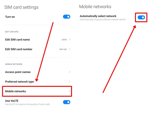 2. NapsauttaaMobiiliverkko> Sammuta automaattisesti Valitse verkko.