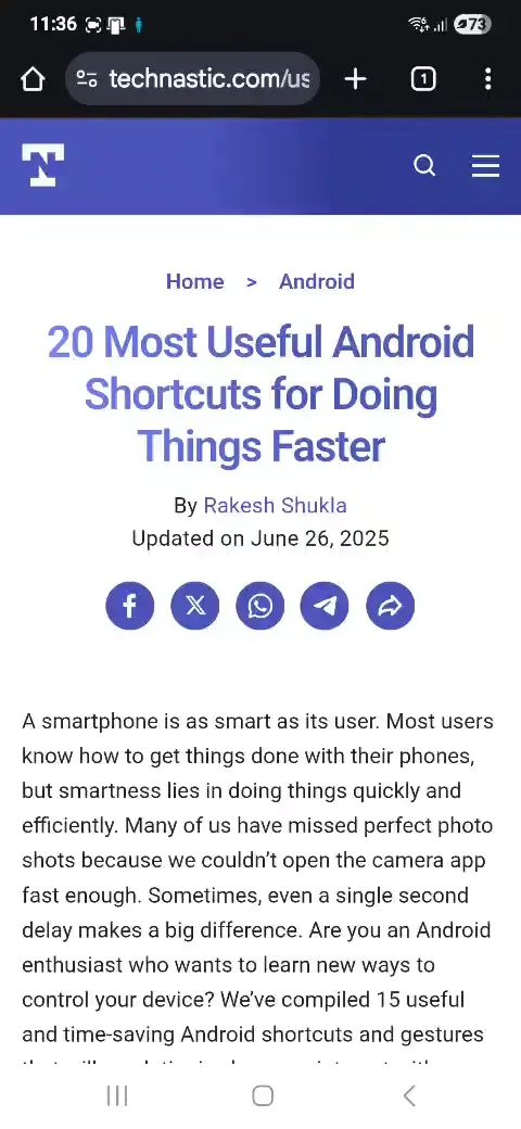 Pull-to-jaettava ele on yksi käyttäjäystävällisimmistä Android-pikakuvakkeista. Yksinkertainen pystysuora pyyhkäisy alaspäin näytölläsi tekee tempun. Näin voit päivittää verkkosivun Chromessa tai muissa tuetuissa selaimissa:
