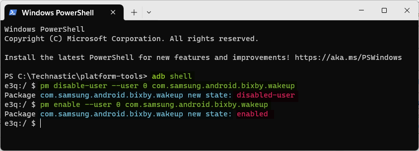 adb shell pm disable-user --user 0 <package-name>Jos haluat ottaa käyttöön käytöstä poistetun sovelluksen myöhemmin, voit käyttää seuraavaa komentoa.