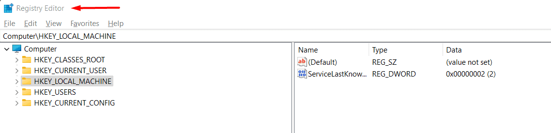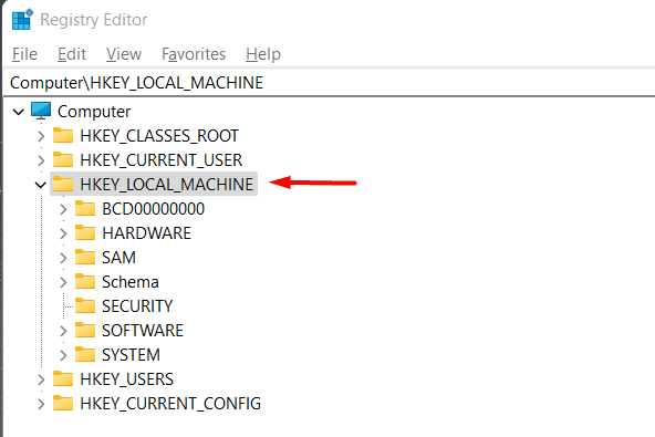 Huomaa: “Hkey_local_machine”Vaihtoehto on saatavana vaihtoehtojen vasemmalla puolella.