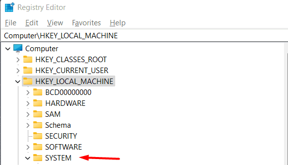Vaihe 10: Napsauta ”Järjestelmä” -vaihtoehtoa käytettävissä olevaa ”Hkey_local_machine”Vaihtoehto.