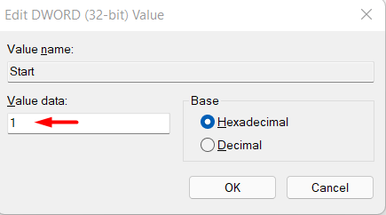 Huomaa: Uusi ponnahdusikkuna näkyy näytöllä otsikolla “Muokkaa dword (32-bittinen) arvo”.