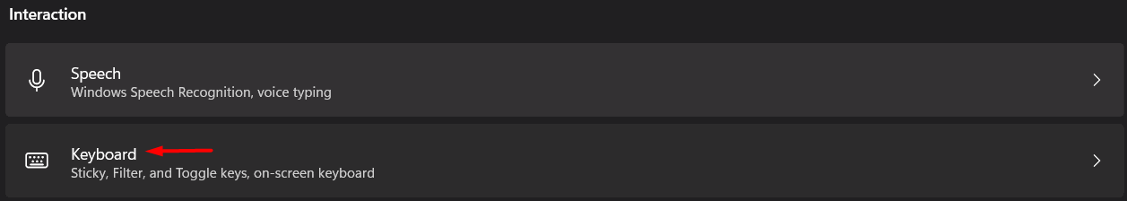 Vaihe 4: Vieritä alas ja valitse sitten ”Näppäimistö"Saatavana"Vuorovaikutus”Vaihtoehto.