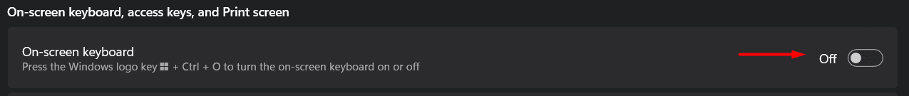 Vaihe 5: Vieritä alas ja käynnistä sitten ”Näytön näppäimistö”.