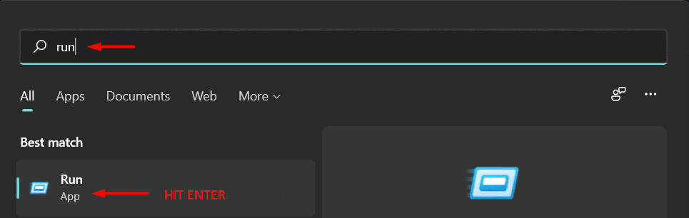 Vaihe 6: Paina Windows -näppäintä ja kirjoita sitten “Juoksua”Ja paina Enter.