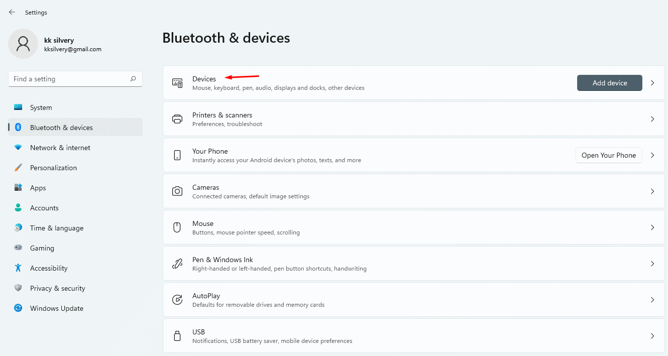 Vaihe 3: Valitse “Bluetooth ja laitteet”Jatka.