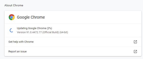 Jos et ole päivittänyt Google Chrome -selaintasi vähään aikaan, on aika päivittää se uusimpaan versioon. Päivitä Google Chrome napsauttamallakolme pistettä > Asetukset > Tietoja Chromesta. Tämä tarkistaa automaattisesti kaikki saatavilla olevat päivitykset.