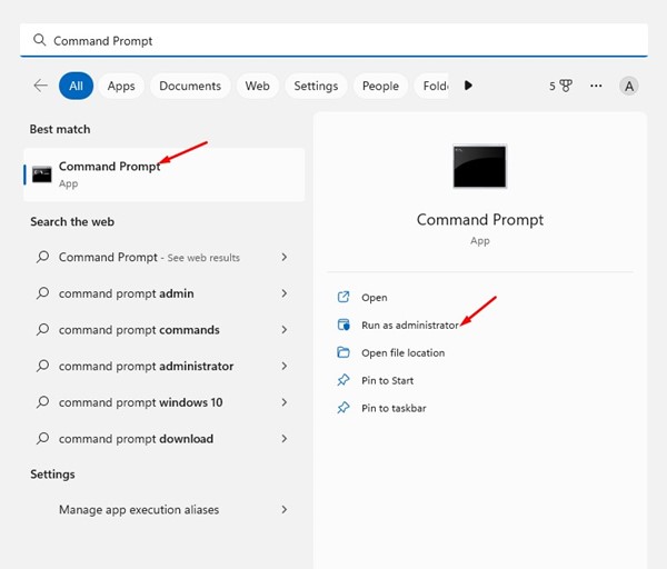1. Napsauta Windows 11 -hakua ja kirjoita CMD. Napsauta hiiren kakkospainikkeella CMD:tä ja valitseSuorita järjestelmänvalvojana.