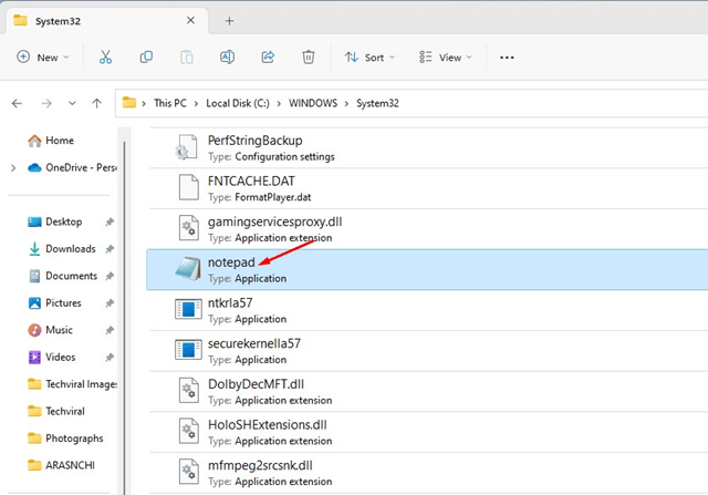 Jos et voi käynnistää muistilappuja kontekstivalikosta, Windows -hausta tai muista keinoista, sinun on käynnistettävä seJärjestelmä32kansio. Jos käytät 32-bittistä käyttöjärjestelmää, sinun on päästävä System32-kansioon.