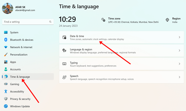 2. Napsauta seuraavaksiPäivämäärä ja aika.