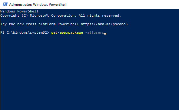 Kun kaikki aiemmin jaetut menetelmät eivät toimi, voit asentaa Microsoft Store uudelleen PowerShellin avulla. Tämä auttaa korjaamaan väärin määritettyjä ja viallisia asennuksia. Seurataan tätä prosessia.