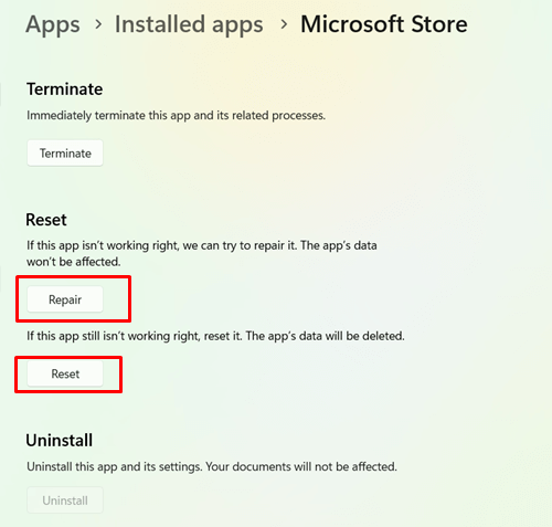 Minkä tahansa tietyn sovelluksen korjaaminen auttaa monissa järjestelmiin liittyvissä ongelmissa. Esimerkiksi, jos sinulla on ongelmia Microsoft Store -sivun kanssa, joka ei ladata, voit korjata Microsoft Store ja nähdä, toimiiko se.