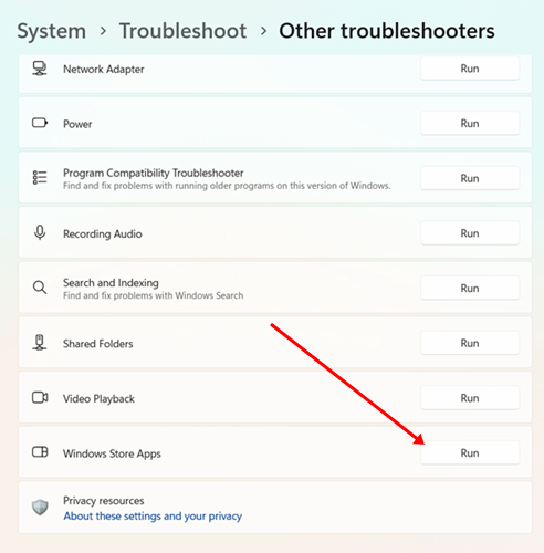 3. Napsauta nytJuoksuapainikeWindows Store -sovellukset. Se analysoi ongelman ja antaa vaiheet sen korjaamiseksi.