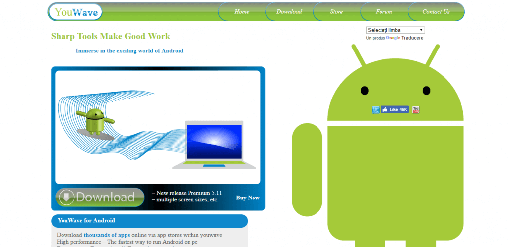 YouWave on toinen hieno Android -emulaattori Windows PCS: lle, jolla on hyvä valikoima ominaisuuksia ja joka tarjoaa tehokkaan emulointiominaisuuden. Voit käyttää tätä ohjelmistoa ladata tuhansia sovelluksia ja pelejä verkossa YouWave -kaupan kautta, ja se on myös yhteensopiva Google Play -kaupasta tulevien sovellusten kanssa.