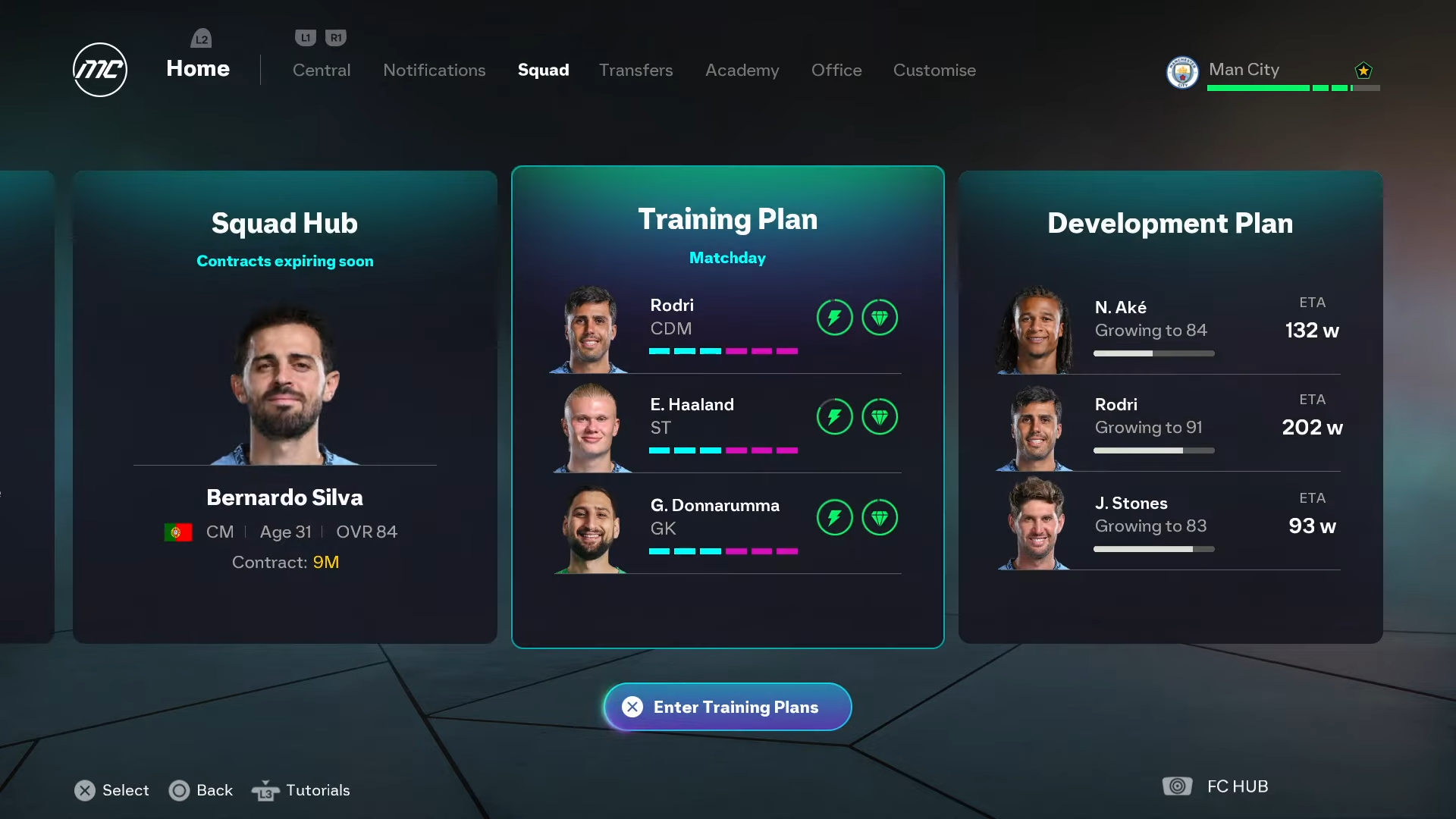 Koulutussuunnitelmat ovat saatavilla Squad -välilehdellä Manager -uratilassa.