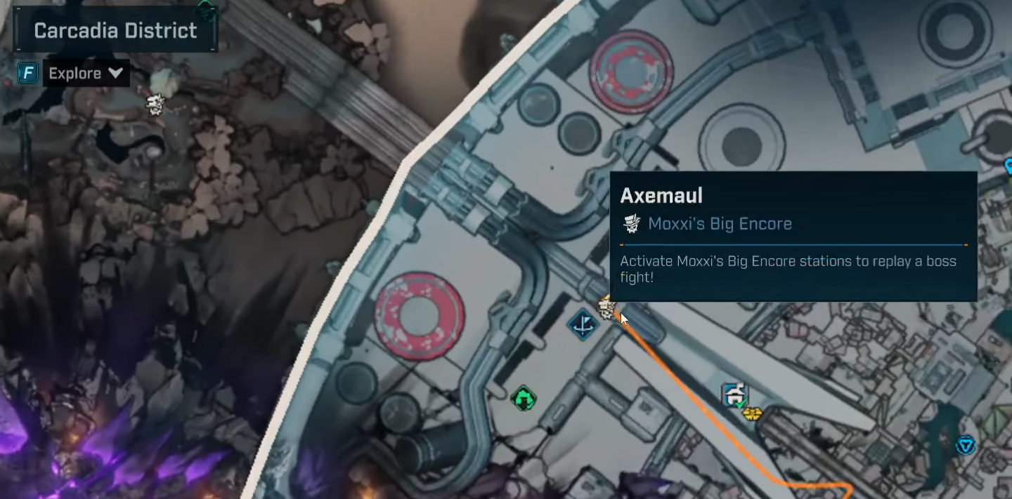 - Käytä MOXXI: n suurta encore -päätettä pomo -areenan ulkopuolella, jotta axemaul ja maatila nopeasti palautetaan buzz -kirveksi; Kustannukset ja saatavuus riippuvat etenemisestä ja konetyypistä.