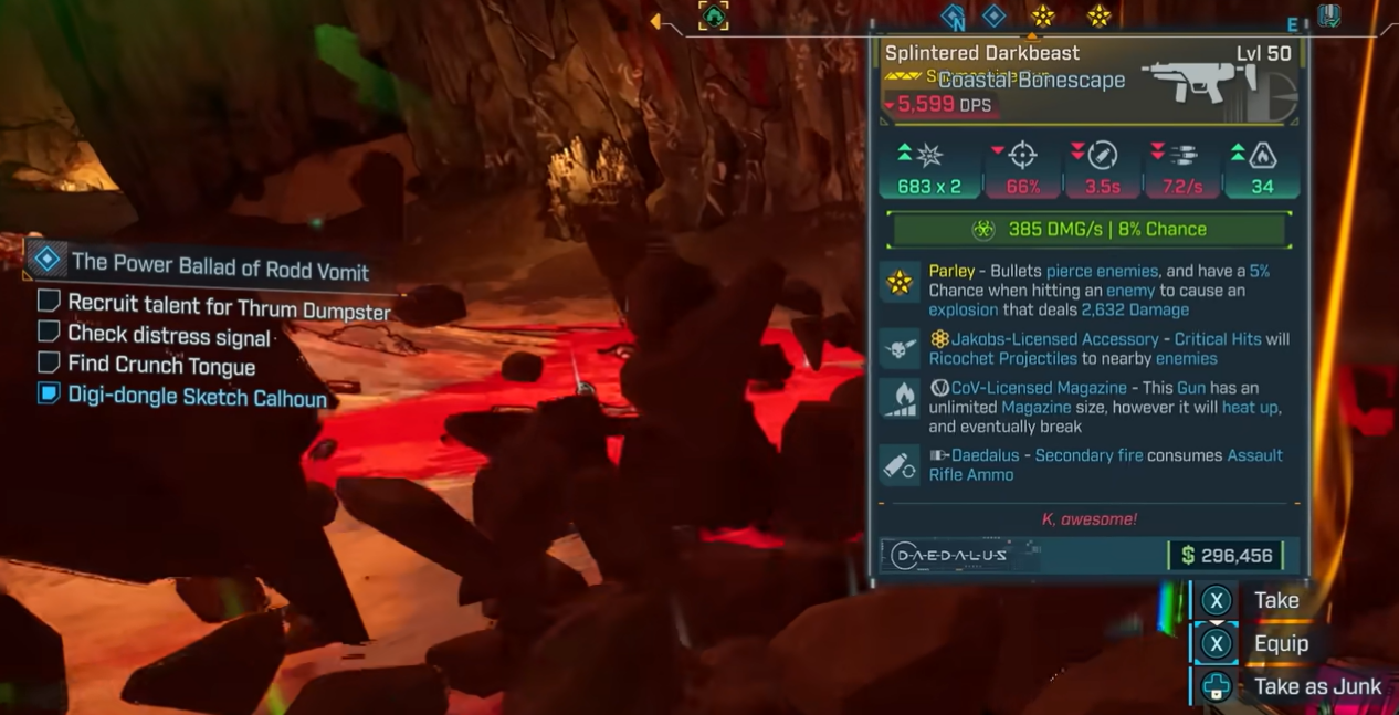 Jos jahtaat näitä kolmea legendaaria Voraxiksesta, reitti on selkeä: Viimeistele vuoren varjo, siirry hylättyyn aukon kaivokseen Timid Kylen laiminlyötyyn avaamiseen, tappaa Voraxis ja käytä sitten Respawn -vaihtoehtoa Moxxin Big Encoren kautta toistaaksesi. Pysyvyyden ja hyvien vaihteiden avulla laskeudut lopulta Darkbeastiin, perunanheittimeen IV tai poijun.