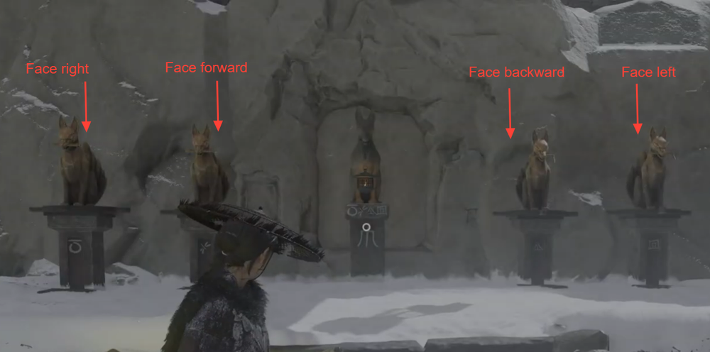 | 2 | Sisäportti | Kettujen patsaiden asettaminen jalustalle suuren lumiportin avaamiseksi piilopaikassa. |