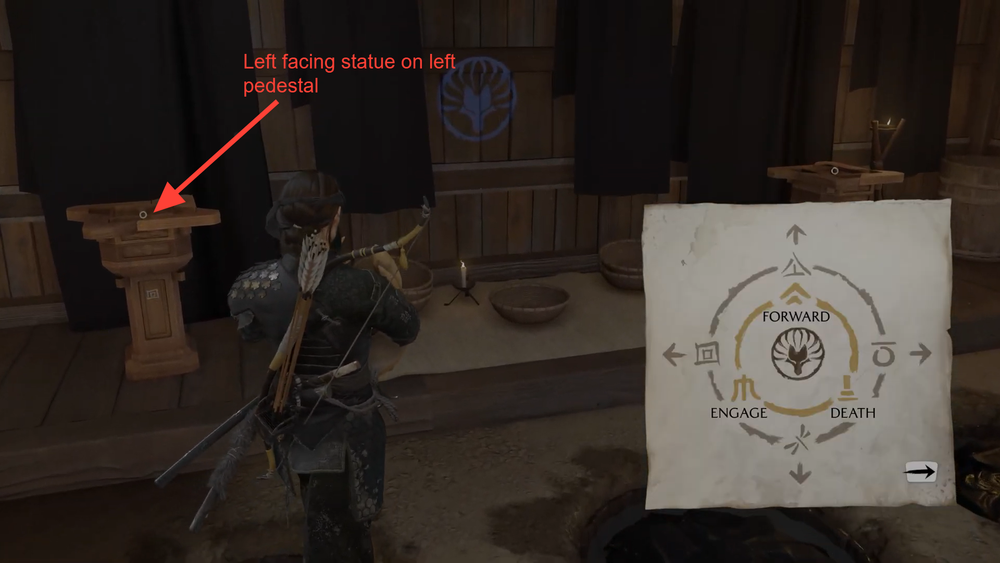 Jalustan (vasen ja oikea) on sijoitettava kaksi patsasta (vasen ja oikea) avaamaan portti ja jatkaaksesi ylöspäin.