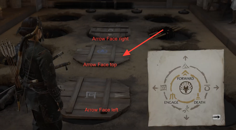| 3 | Yläpolku portin ulkopuolella | Pyörittää useita kettupatsaita kohdistaaksesi ne oikein ja avataksesi pystysuoran polun ylöspäin. |