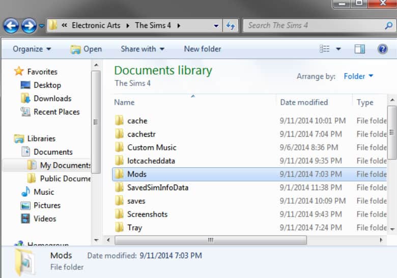 4. Etsi Sims 4 -pelikansiossa “Modit”Kansio.
