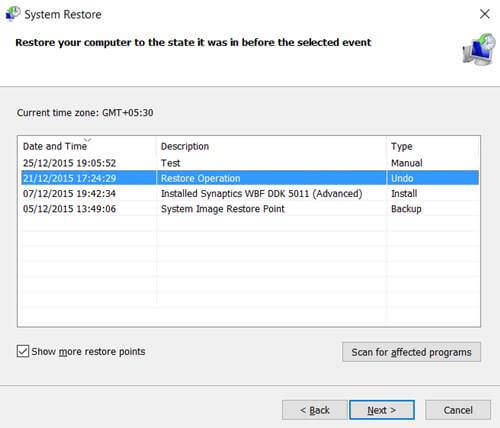4. TarkistaaNäytä lisää palautuspisteitävaihtoehto ja etsi palautuspiste sittenValitse haluttu palautuspisteja napsauta Seuraava.