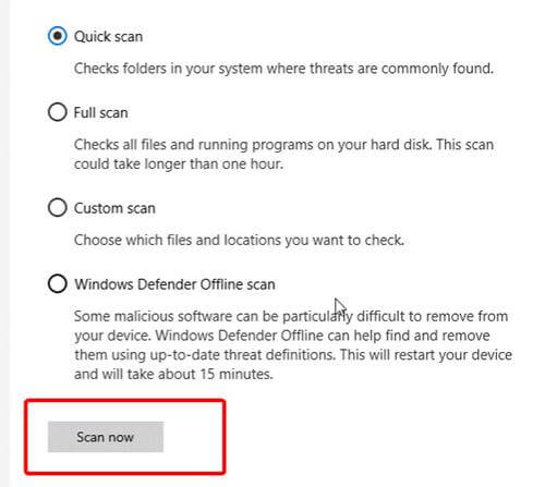 3. Nyt on olemassa neljä tyyppiä skannauksia, kuten pika skannaus, täysi skannaus, mukautettu skannaus ja offline -skannaus.