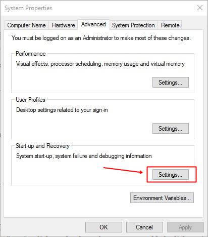 3. NapsauttaaasetuksetallaKäynnistys ja toipuminenvaihtoehto.