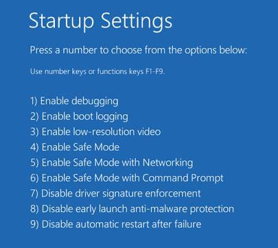4. Uudelleenkäynnistyksen jälkeen näet erilaisia"Käynnistysasetukset"Näytön vaihtoehdot, jotka liittyvät vikasietotilaan.