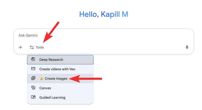 Vaihe 1: Avaa Google Gemini ja valitse kuvan luomisvaihtoehto