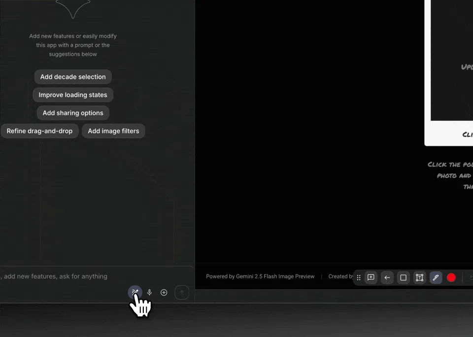 Jos esimerkiksi haluat tekoälykuvaeditorin tai kirjoitusassistentin, selitä se. SittenAI Studio, virtalähteenäGemini mallit, tekee loput automaattisesti.
