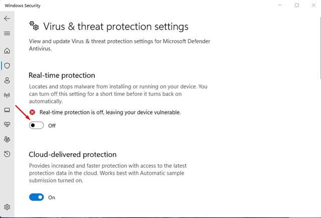 Windows Security -sovelluksen reaaliaikainen suojaus voi myös estää lataukset Google Chrome -selaimessa. Siksi, jos et vieläkään voi ladata tiedostoa, sinun on väliaikaisesti poistaa suojausohjelma käytöstä.