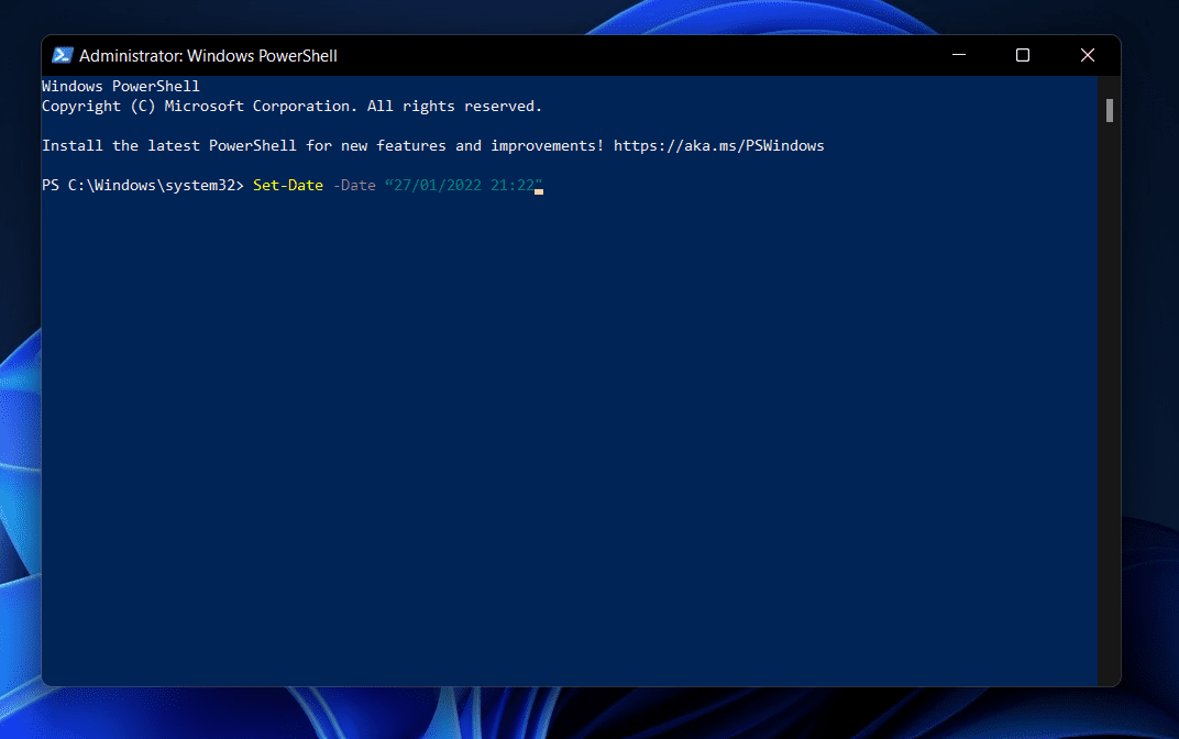 Voit myös muuttaa päivämäärää ja aikaa Windows 11: ssä käyttämällä Windows PowerShelliä. Jos haluat muuttaa päivämäärää ja aikaa Windows PowerShellin avulla, seuraa alla olevia vaiheita