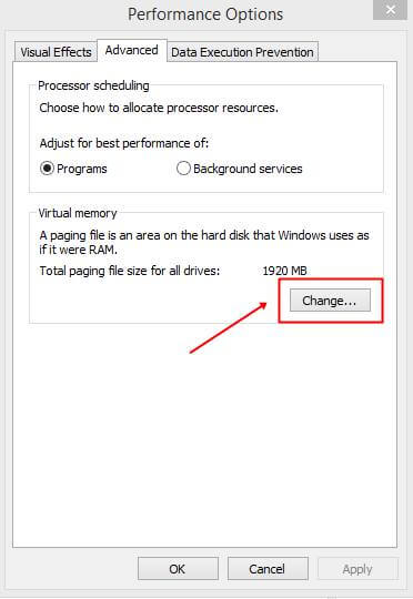 6. Löydät sieltä virtuaalisen muistin osan, ja nyt sinun on napsautettavamuuttaavaihtoehto.