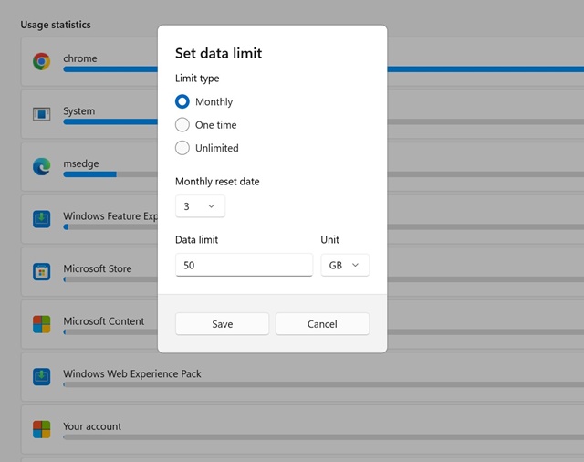 Kun tietojen käyttöraja saavutetaan, Windows 11 pysäyttää Internetin kulutuksen. Joten, jos et voi seurata, mitkä sovellukset käyttävät Internetiä taustalla, on parasta asettaa tiedonkäyttöraja.
