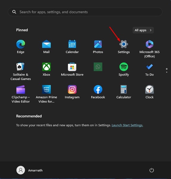 1. Napsauta Windows -käynnistyspainiketta ja valitseAsetukset.