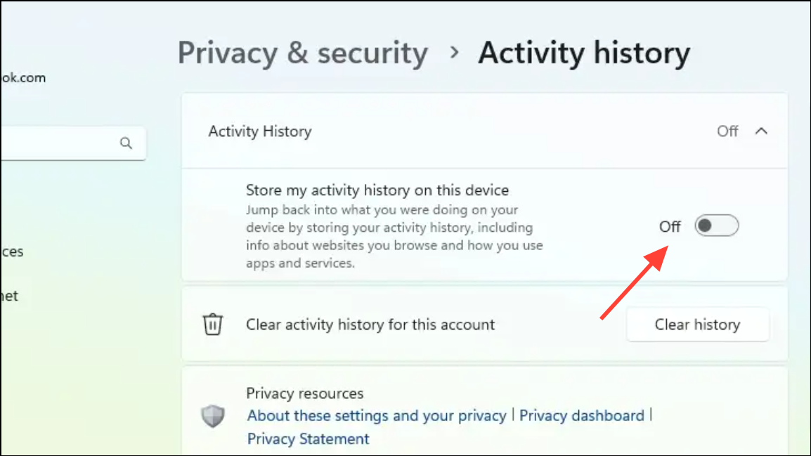 Käyttäjille, jotka aiemmin antoivat Windowsin synkronoida toimintahistoriaaan Microsoft -tilinsä kanssa, pilvessä voi olla lisätietueita. Näiden poistaminen varmistaa, että tietosi ei säilytetä laitteiden välillä tai Microsoft -palvelimilla.