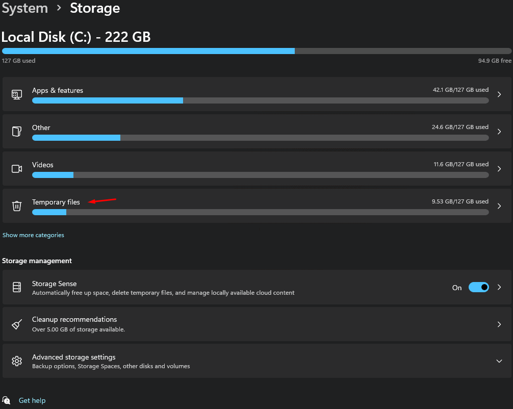 Tapoja väliaikaisten tiedostojen tyhjentämiseksi Windows 11: ssä