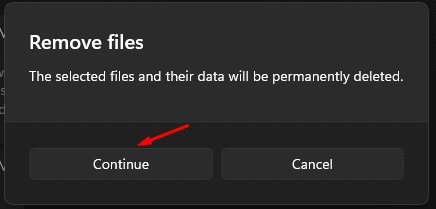 Vaihe 6:Vahvista toiminta napsauttamalla ”Poista tiedostot”Vaihtoehto.