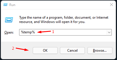 Vaihe 2:Kopioi ja liitä “%Temp%” ja napsauta “OK” avataksesi sen.