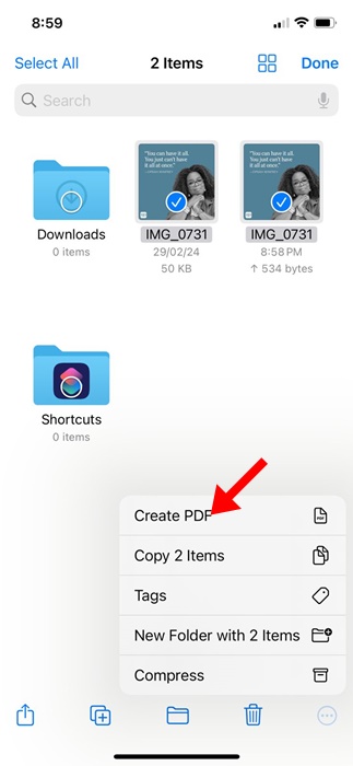 Native File Manager -sovellus iPhonelle on tarpeeksi hyvä kuvien muuntamiseen PDF -muotoon. Näin voit käyttää natiivitiedosto -sovellusta iPhonessa muuntaaksesi kuvat PDF: ksi.
