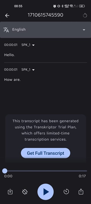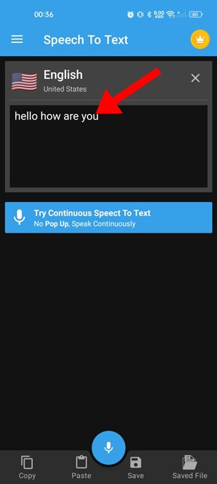 4. Sovellus tunnistaa automaattisesti äänesi ja näyttää sinulletekstiversionäytölläsi. Voit kopioida tekstin ja liittää sen mihin tahansa muuhun sovellukseen.