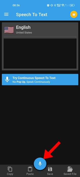 Puhe tekstiksi on toinen ilmainen Android-sovellus luettelossa, jonka avulla voit muuntaa puheesi tekstiksi. Sovellus ei ole kovin suosittu, mutta se tekee tehtävänsä melko hyvin.